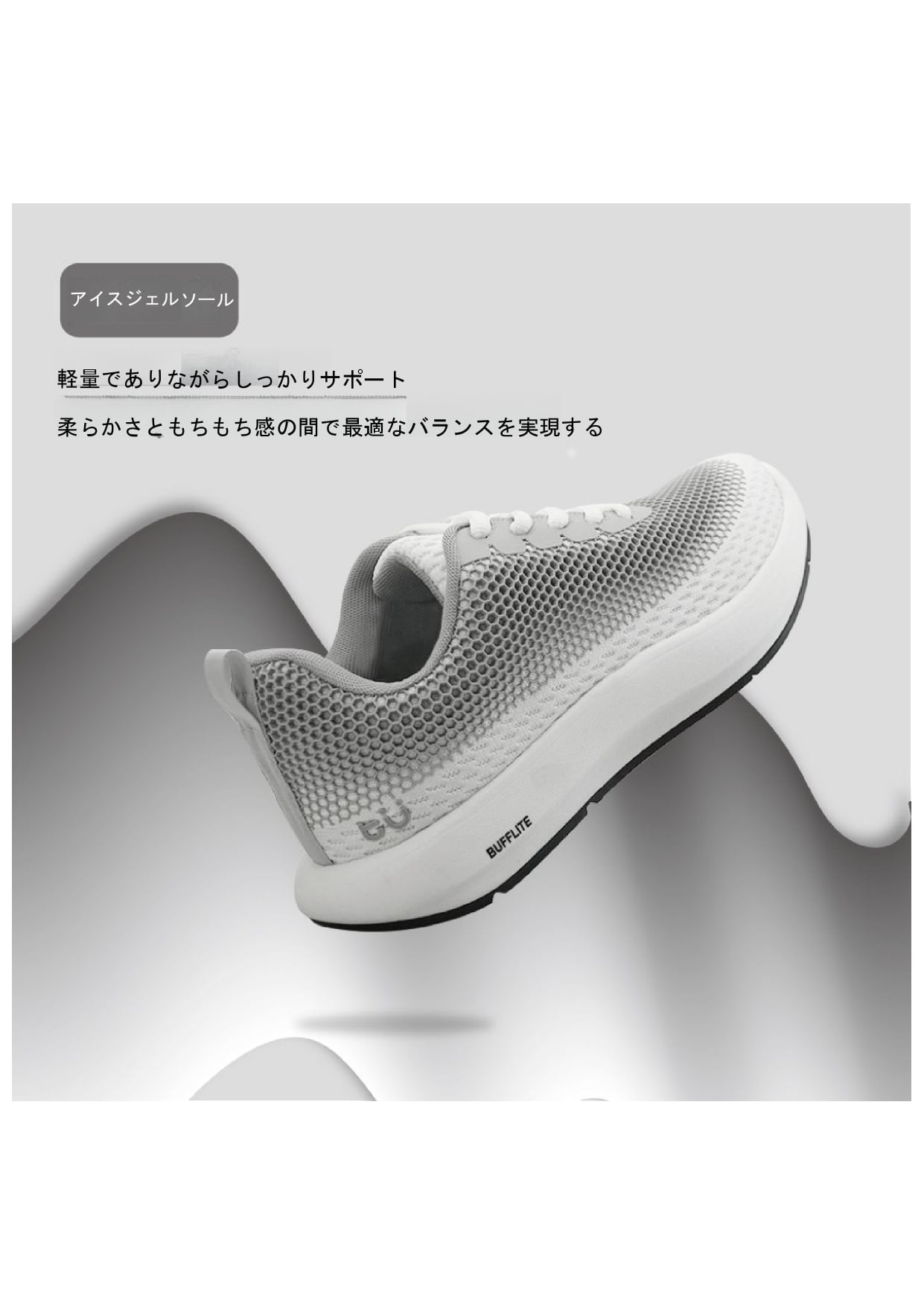 •柔らかなクッション性を実現する軽量BUFFLITEジェルアウトソール